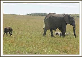 Another hectic Sunday 7th November (it always happens on a Sunday!); another rescue alert following a phone call from the Mara Conservancy that there was a young, and very sick elephant mother, with an enormous festering abscess on her abdomen and a tiny newborn calf, who was in a very weak condition. Both mother and baby looked like set to die unless the mother received urgent Veterinary intervention, and the baby, some milk. The prognosis for the mother was never encouraging, since the abscess was huge and severely infected; the prognosis for the baby even less so, since the mother was obviously too ill to produce milk, and would be even less likely to be able to feed her calf having had immobilizing drugs. However, the Mombasa Vet, Dr. Kashmiri. who usually handles the Masai Mara cases, was on his way from Mombasa to immobilize the mother and assess the seriousness of her wounds when a decision would be made as to whether to euthenase her to spare her further suffering, should her chances of recovery prove unlikely. We were asked to stand by should the calf be a candidate for rescue.