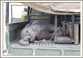 After a much needed break of 2 weeks, Saturday 14th March brought another Elephant Rescue, a yearling calf, believe it or not, from the self-same well at the foot of Mt. Kilimanjaro that has already been responsible for having orphaned Sinya, Kibo, and Mawenzi. This well is situated in Masai Tribal Land at a place known as Sinya. And it has been dug through Meerschaum rock which seems to have a devastating affect on bruised skin. The latest arrival is a baby female, whom we have named “Shira”; the name of another peak on Kilimanjaro, the highest mountain in Africa which dominates the Amboseli landscape.