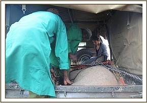 Dr. Mutinda chose to anaesthetize the baby elephant and it was then transported by vehicle to Lewa airstrip where the KWS ground team met up with the DSWT rescue team. Once the elephant calf was loaded onto the aircraft and safely secured he was revived to ensure that he did not remain under anaesthetic for too long as this is never advisable with baby elephants.