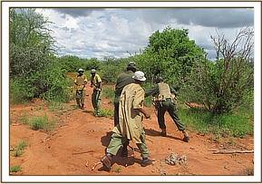 After several radio calls a team of elephant keepers from the Ithumba rehabilitation stockades and one of the DSWTs anti-poaching units was deployed, having to hurry to the site where calf was last sighted, which was some distance from the stockades.