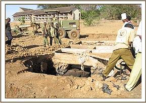 The Tsavo Mobile Veterinary unit run by The David Sheldrick WildlifeTrust thanks to a grant from Vier Photen, were called to Ngulia inTsavo West to assist rescue two bull elephants that had fallen into the septic tank at the Ngulia safari lodge