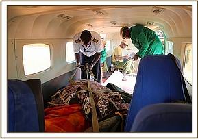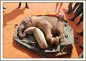 The Kenya Wildlife Service Senior warden of Tsavo East was informed and he called the Trust’s Voi elephant Keepers to mobilise a rescue after which the calf was duly captured with little residence due to its emaciated condition. He was a young male and was driven to the airstrip to wait for the aircraft from Nairobi which had in the meantime been arranged; this ensured the rescue was seamless with little delay. The rescued baby was prepared for the flight, hydrated throughout the journey and placed in a stockade at our Nairobi Nursery.
