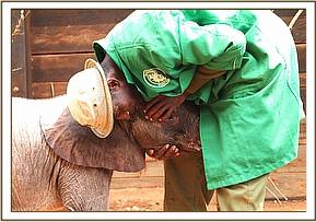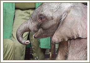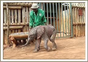 She joins the other orphans for periods of time, but while She loves their company she still prefers the company of her elephant Keepers at this early stage. She is extremely playful and loves play in the sand and red earth, and is curiously exploring everything around her as she learns to get better control of her tiny little trunk. She has started to do playful baby mock charges, and is simply enchanting, and all those who meet her fall completely and helplessly in love.