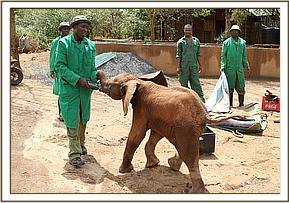 On the 8th of August he was already showing signs of improvement after tests revealed he had liver fluke, which was promptly treated. Balguda grew in strength quickly and even started to play in the mud bath and with the other orphans, but sadly he started to show the all too familiar signs of lethargy. He would once again have periods of strength then he would go off his food, and become dull and quiet. Further tests revealed a bacterial infection which he was once again treated for but again he showed signs of improvement and then became dull once more. After another course of medication all behavioral signs indicated he was on the road to recovery but he developed serious edema which is usually a sign of a lack of protein so his diet was supplemented. Throughout Balguda's life DSWT reached out to veterinary experts across the globe hoping they would have some new insight on Balguda’s persistent problem. Blood samples were sent overseas in hopes that new testing would reveal a piece to the puzzle.