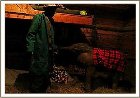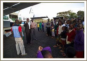 The elephant calf was rescued at the Kaboroi Area near Cheptai River by a KWS team. Her mother was sadly speared to death two days before by poachers. There was no sign of her tusks and her face bore severe hack wounds proving beyond doubt she had been killed for her ivory. The plane was met by school children who had run out of their homes to watch the plane land. It was late in the day, so time was of the essence as the team waited patiently for the elephant baby to arrive. Finally a KWS land cruiser pulled up with a little baby elephant standing in the back, just in time as any longer and the plane wouldn’t have been unable to take off in the dark.