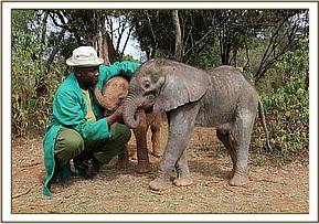 Risasi: Risasi was rescued from Tsavo East National Park. He was a spirited strong willed young bull the keepers nicknamed Risasi; He was rescued and treated by the DSWT/KWS Tsavo Veterinary Unit before being airlifted to the Nairobi Nursery.