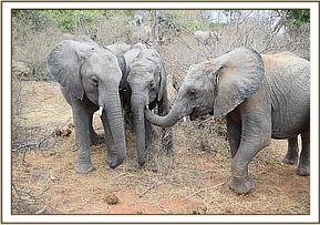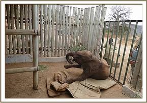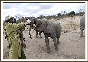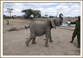 On arrival back at Ithumba he was surprised by his best friends Galla, Wanjala and Ukame, who travelled to Ithumba the week they went missing, so for Karisa this was a welcome surprise. He is totally settled, as is Dupotto glued to her best friend Kamok, and fully in the routine at Ithumba. Karisa's arrival was a great relief, as he is the baby of the trio, and we were worried about him as the conditions begin to dry within the north of Tsavo, but it is evident that they have some special wild friends amongst the wild bulls that visit us. One particular bull visited Karisa for two days after he returned, coming to the stockades, trunk in the air with both of them rumbling and communicating, and when they are around he is very comfortable in their company, but they seemingly understand that this is where he needs to be through the dry season, with both orphans hooked once again on their much loved milk bottles.