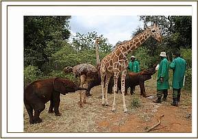 And so it is today the orphaned elephants and Pea always together during the hours of daylight, and at night Pea is kept safe in specially designed stables to accommodate those with long necks – i.e. Kiko the orphaned giraffe and herself.