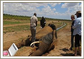 She was immobilized on the bank of the river in Samburu National Reserve using M99. After her treatment the prognosis for recovery remained guarded.
