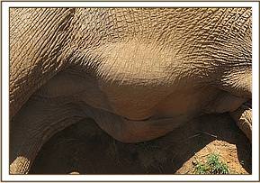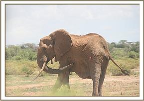 On the 11th of November the Trust funded Northern Mobile Veterinary Unit based out of Meru National Park headed by KWS seconded Veterinary Officer Dr. Bernard Rono was called by Save the Elephants to treat a well-known 30 year old female elephant called Alpine who was showing signs of emaciation, seemingly unable to feed and suffering from a huge swelling under her abdomen. When the team arrived on site she was showing signs of colic, extremely restless and throwing copious quantities of dust on her swollen abdomen.