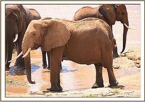 On a follow up visit from the Veterinary Unit on 27th November Alpine showed improvement and had re-joined her herd. Yesterday, the 6th of December, Alpine was again spotted amidst her herd wallowing and frolicking in the Samburu river, behaving normally, her swollen abdomen no longer evident, appearing to have made a miraculous recovery.