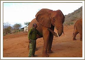 Another very special arrival that day was Mweya, a unique little orphan from Uganda who was rescued from the shores of Lake George in Queen Elizabeth National Park in 2001. Having wandered all alone into a fishing village at only one month old, Mweya found her way to the safety of the Uganda Education Centre where she was lovingly cared for with the companionship of cheeky chimpanzees for six weeks before being allowed to cross the international border into Kenya, and arrive by helicopter in Nairobi. After such a traumatic and extraordinary start to life Mweya has grown into a wonderful elephant who has embraced Kenya and her Kenyan family, having found a new life with Emily and the rest of her group.