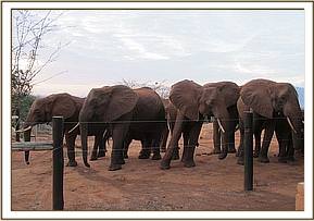 The three big bulls which returned with Emilys group included Laikipia, Morani and Lolokwe and the keepers were so glad to see them all in such good condition. Laikipia, who was rescued over thirteen years ago at the age of only twelve months proudly sauntered around the stockade on arrival, peeling off vegetation from the overhanging trees and spending time with the younger keeper-dependant orphans.