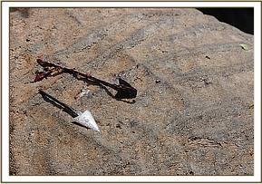 In July 2012 a huge wild bull elephant aged at approximately 40 years old, now known to everyone as Mshale (the Swahili word for arrow), was treated at the Ithumba Orphans Rehabilitation facility in Northern Tsavo East National Park, having been targeted by ivory poachers. Fortunately Mshale made it to the safety of the Ithumba stockades before his deadly suppurating poisoned arrow wound ended his life, and with the support of the DSWT's Tsavo Mobile Veterinary Unit and veterinary field officer Dr Poghon, a poisoned arrow laced with Akokanthera toxin was removed from deep inside the bull's great body before he was given full treatment and revived. Having thankfully healed entirely, Mshale soon became a regular wild visitor at the Ithumba stockade, enjoying the safe access to the regularly filled water trough, the company of the ex-orphans, whilst becoming curiously accustomed to the human Keepers who helped to save his life.
