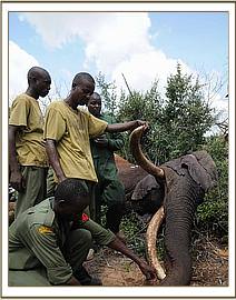 In July 2012 a huge wild bull elephant aged at approximately 40 years old, now known to everyone as Mshale (the Swahili word for arrow), was treated at the Ithumba Orphans Rehabilitation facility in Northern Tsavo East National Park, having been targeted by ivory poachers