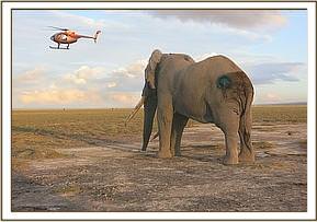 On the afternoon on the 10th of November DSWT Executive Director Angela Sheldrick called DSWT helicopter pilot Humphrey Carter to explain to him that the famous big tusker "Tim" had been seen and reported wounded in Amboseli on Saturday the 8th, and that by 3.00pm on Monday he had still not been found to treat – The DSWT Helicopter had been requested to help locate this well know iconic bull by KWS Veterinary officer Dr. Njoroge who heads the DSWT funded Southern Conservation Mobile Veterinary Unit which covers the Amboseli ecosystem along with the Southern end of Tsavo West.