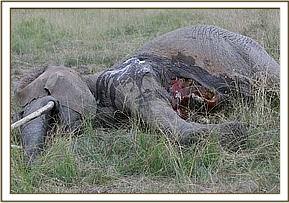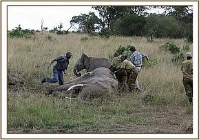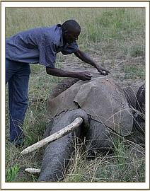 During the late afternoon of the 12th September, 2006, we received a call from Kicheche Camp in the Masai Mara National Reserve reporting a seriously wounded mother elephant with a one year old calf at foot