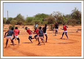 By 10.30am children from Sowa Primary, Gideon Mosi Primary and Gimba Primary had joined their peers from Kalambe Primary to begin the games. After handing out the special football and netball kits the 28 girls and 52 boys from remote bush schools looked like professional players against a backdrop of rolling hills.
