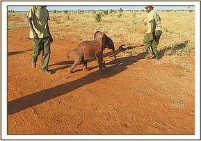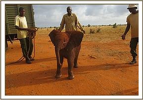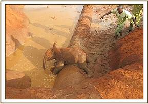 Thankfully in Tsavo East Voi this stretch of pipeline is a popular tourist route and in the case of these two stricken babies they were seen by tourists and reported to KWS in time enabling the David Sheldrick Wildlife Team to rescue them and reunite them before their mothers and herd had abandoned them.