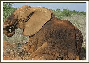 Another rescue was of a 2 year old at in Tsavo east. The calf was lame on its left hind leg which was thought to be due to a fracture that was in the process of uniting. There was an opening at the level of the injury that was oozing pus that we suspected was a result of a poisonous arrow wound. The calf was immobilised and taken to the Voi elephant stockades where treatment was administered. A lot of white thick pus was drained from the injury and the opening was widened to create drainage for any other pus that would have accumulated after the treatment. Unfortunately on the second day, the calf went down during the night and could not stand up even when supported and later died.