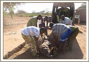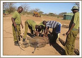 During the night of January 20th 2009, Kenya Wildlife Service Rangers based near the Ziwani Sisal Estate at the Southern end of Tsavo West National Park heard distressed crying from an elephant coming from the direction of an irrigation canal on the Estate, where many wild animals habitually come to drink