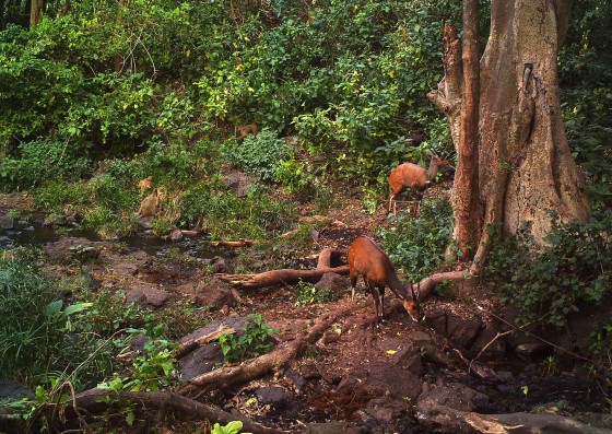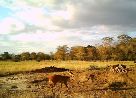 One of the first pictures captured by the camera was this early morning shot of a lone bushbuck approaching the man-made salt lick, which lies in an open flay in front of Umani Lodge.