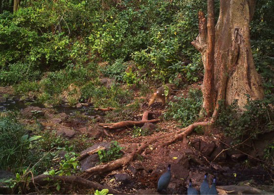 Newly acquired camera traps are allowing DSWT to record images of a surprising number and range of animal species for the very first time in Kibwezi forest, revealing a secret world. The cameras are usually triggered during the night, but animals such as baboons and bushbucks, the latter of which has made a dramatic recovery in the last year, are frequently photographed. It has also been exciting for DSWT to recently capture crested guineafowls scratching for insects near the spring. Although now seen quite frequently in huge flocks during the day, they are shy and can be extremely difficult to photograph.