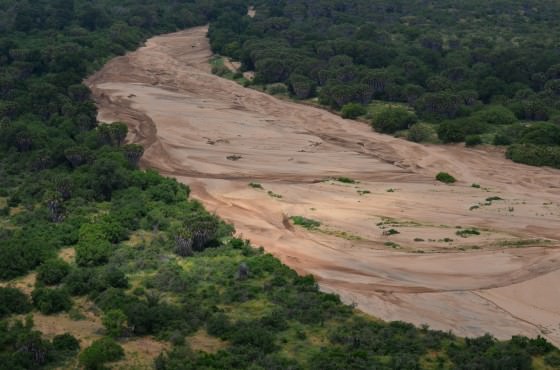 Under the surface, even in the height of the dry season, water continues to seep through miles upon miles of sand as it creeps steadily towards the eastern border of Tsavo East. Occasionally, the water is pushed to the surface by volcanic, rock dams that lie under the riverbed and create springs, which provide life-giving water long after the waterholes have dried up.