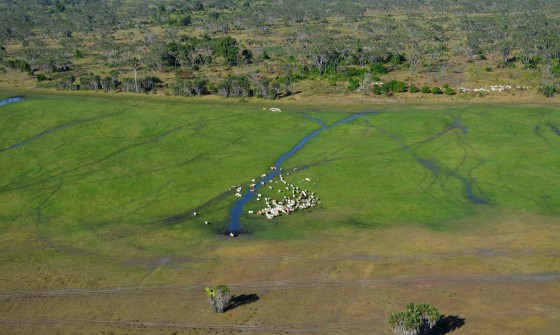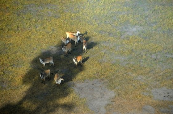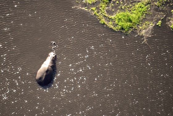 Fortunately, the interior of the ranch shows very little human interaction, and offers some excellent game-viewing. Huge herds of buffalo and topi can be spotted from the air, as well as hippos in recently flooded pans and rivers. Nick even pointed out a mating pair of hippopotami. Hopefully, they weren't disturbed by the plane!