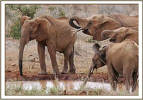 Joseph Sauni, the Head Keeper at the Voi Elephant Rehabilitation Centre in Southern Tsavo East National Park, was on a routine motorized patrol on the 13th April, 2012, when he happened upon the Ex Orphans of Emilys now wild unit, who were actually already on their way back to the Voi Stockades