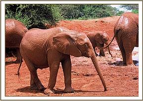 When first seen, she was still surrounded by her confused elephant family who for the next three days desperately tried to get the brain damaged infant, who could only walk in circles, to follow. In the end, they had to give up and leave her, by which time she was in a near dead state of total collapse. Fortunately, it was a Veterinarian who rescued her and who was able to administer rehydration through a tube inserted down her throat directly into her stomach, which undoubtedly saved her life.
