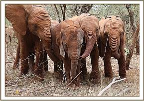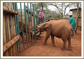 We have named him Alamaya, which is the Maa word for 'Brave'. He was rescued not far from where little Boromoko was rescued, and has an identical face, with prominent protruding bug eyes fringed with beautiful eye lashes. He has the same loving easy nature and has settled in surprisingly fast to Nursery life. We cannot help feel that he just might be related to little Boromoko as they have a very similar and very distinctive look, and were rescued from exactly the same area.