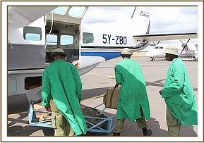 In Nairobi on the morning of the 29th the Nairobi team and plane were ready to depart on their mission having been briefed the previous evening. Three of the Nairobi Keepers set off to Nairobi’s domestic airport at 9am to catch the rescue plane to Voi in Tsavo East where the Voi Keepers were preparing the calf for her plane journey to Kenya’s capital city.