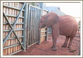 The presence of the other orphans at the Voi Stockades was a huge comfort to the new arrival who desperately needed love and reassurance. Shimba, who is recovering remarkably from his lion attack injuries was a great help in getting the calf settled down, stretching his trunk through the stockade fence to offer affection and encouragement and reassurance.