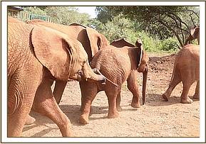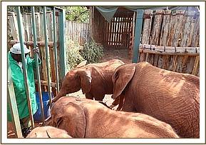 It took Arruba a good few days to calm down and feed on milk, and once she trusted the Keepers enough to follow them she was let out of the confines of her stockade to join the Nursery orphans. By this time she knew them as they had been brought to her stockade for every feed time in an effort to coax her into drinking the milk formula that she seemed so reluctant to take.