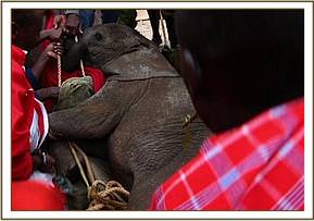 Reports of an orphaned baby were first received five days previously from the Masai community near the Masai Mara Game Reserve after she had been driven away by dogs. She later arrived on the lawns of Cotters 1920s Camp in the Masai Mara, and watered at their waterhole staying close for protection. With a den of hyenas living closeby with each passing day and night her chances of survival were lessened. There were no herds of elephants in the area, and Cotters 1920’s is situated very close to the Tanzanian border. The fate of her mother remained unknown, but she was a suspected poaching victim, probably from Tanzania.