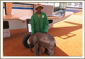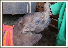 Angela at The Sheldrick Wildlife Trust headquarters was called and a rescue arranged to collect this tiny baby by aircraft to fly her to the Nursery where she could received the intensive care infant babies require. We have called her Ashaka, after a watercourse in Tsavo East National Park. She arrived safely in Nairobi and was immediately introduced to the other tiny babies in our care and soon settled into the fold.