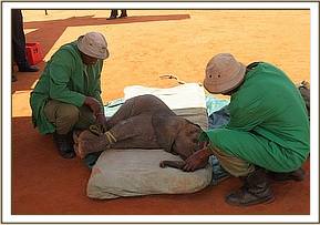The herd had obviously made the decision to abandon the calf and head to the safety of the Park Boundary well before day break. The Manyani recruits and rangers rescued the calf and kept her in a stable at the training academy while they alerted our team and waited for our Voi Keepers and milk to arrive on site. Sadly despite everyone wanting to try to reunite the calf with her elephant family neither her herd nor any elephants for that matter were located in the area so any possibility of this happening was ruled out.