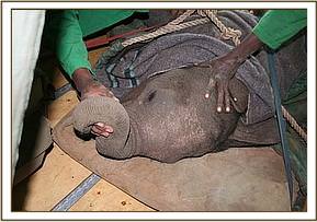 She arrived at the Nursery in the afternoon, emaciated and with diarrhoea, passing mud in a very runny stool, so was immediately put on a course of antibiotics and the usual coagulating agents. She was very fearful of humans, but had still sufficient reserves, thankfully.
