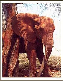 'Emily' was the Matriarch of the unit known for Scientific purposes as 'The E Group', but sadly she died as a result of foraging in the rubbish pit of a nearby Safari Lodge, and in amongst the peelings of fruit and vegetables, which were the draw in the first place, were bottle-tops, broken glass, torch cells and even an ash-tray, all of which she ingested, and were revealed in amongst the stomach contents during a post-mortem examination to determine the cause of death. Edo, her calf, was 6 months at the time, having been born in March 1989.