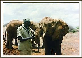 Another important factor that makes the Amboseli population of elephants unique is that it is the only elephant population on the entire African Continent that has not been fragmented by poaching for the Ivory Trade. In Amboseli, magnificent high ranking bulls over 50 years in age, carrying huge tusks still exist, as do elderly Matriarchs who are grandmothers and even great grandmothers with intact family units to illustrate natural behaviour patterns not seen elsewhere. Our orphan Edo is the son of an Amboseli cow called 'Emily', the elder sister to the now famous 'Echo', the star of many books and films.