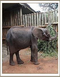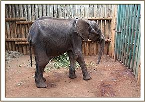 The calf arrived in the late evening. With her thick layer of black hairs she looked typical of Mount Kenya elephants. She was emaciated clearly having been without her mother for a good long time. The first days in the Nursery were very much touch and go with her collapsing and requiring IV fluids in order to get her back on her feet. Fortunately she continued to feed and this slowly enabled her to gain strength over the coming days.