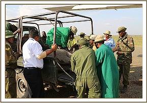 The SWT was contacted and a rescue was mobilized headed to the Mara North Conservancy. The SWT rescue team arrived in the afternoon and found the calf already captured and standing in the back of a land cruiser waiting for them on the airfield. Of course the fact that his older brother of seven had lost on this day his beloved mother and tiny brother was not lost on any of those involved in this case. Thankfully we are confident that he is old enough to be looked after by his loving relatives and in time his physiological wounds will heal.