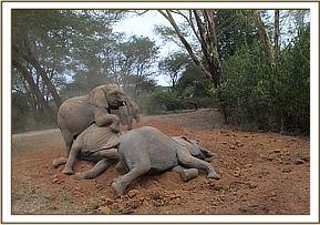 Ngasha and Faraja wallowing