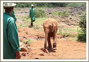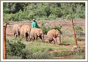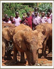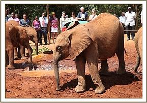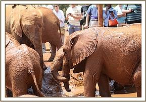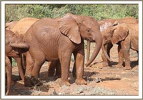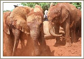 Faraja leading the orphans to the mudbath