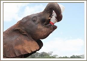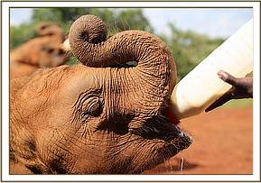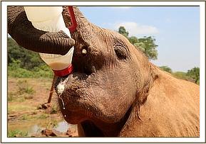 Faraja drinks milk and shows off tiny tusks