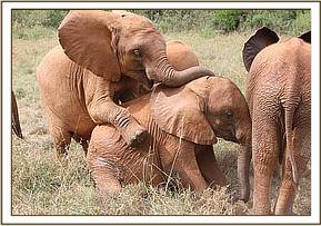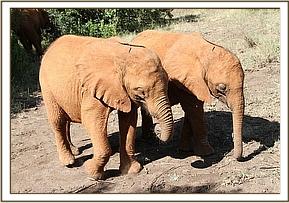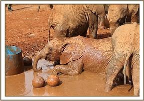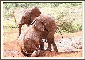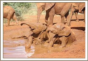 Kithaka and Faraja play at the mudbath