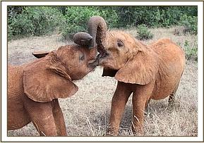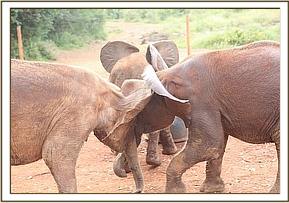 Ngasha and Faraja get ready for a pushing match