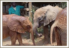 Before boarding the plane in Voi, she had taken the milk and rehydration that the rescue plane had brought. Once up on her feet in one of the rhino Stockades at the Nursery, previously occupied by Napasha, she immediately began feeding on greens in between bouts of aggression directed at the humans. However, it was milk she needed most, and this she took eagerly, before charging again at the Keeper, who had to be careful to try and keep from being pinned against the wall.