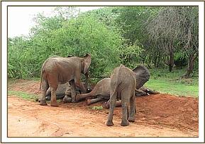 Sunyei, Rapsu, Galana and Ndomot at the mudbath
